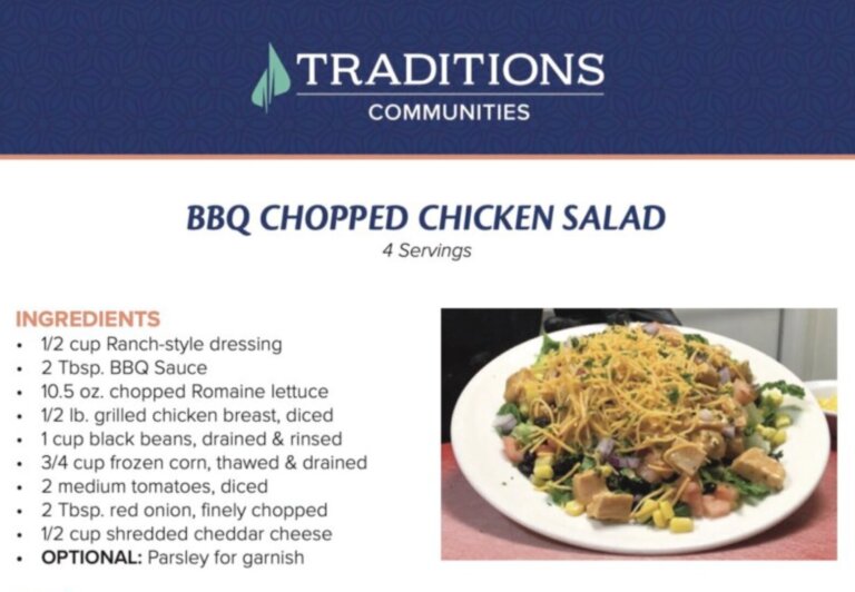 Check out this fun spring recipe for BBQ Chopped Chicken Salad. One of the amazing meals being served in Traditions...